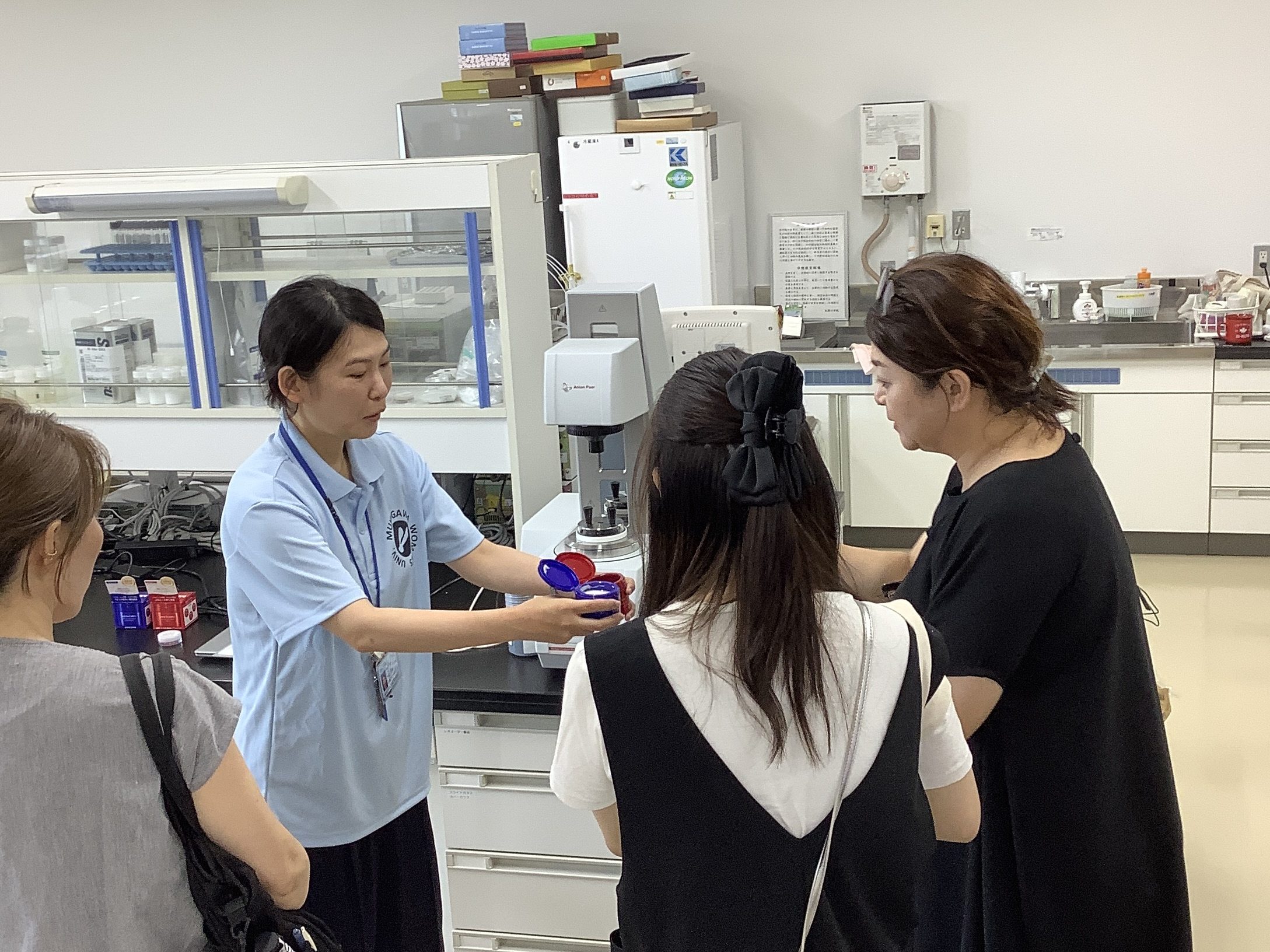 「薬用植物スクール」では、薬用植物を使ったハーバリウムづくり、ハーブの香り当てクイズ、葛根湯を構成する7種の生薬の観察を行いました。ハーバリウムは持ち帰ることが出来ますので、ムコジョ薬学の余韻をご自宅でも楽しんでください! また、臨床試験体験「Tea Timeしながら、臨床試験を体験しよう!」では、甘さの異なる紅茶を試飲し、甘さの評価を通して臨床試験の奥深さを楽しんでいただきました。さらに、好評の化粧品研究体験「美白化粧品の効果を実感しよう!」も開催され、化粧品のサイエンスを体験していただきました。